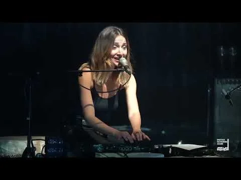 Les lumières, travaillées en lien avec les vidéos, mettent en valeur cette architecture scénique. En jouant sur des contrastes subtils, elles accompagnent les performances de Lynn Adib et Hala Omran, tout en renforçant les tensions entre horizontalité et verticalité. Les projections vidéo, intégrées aux lumières, ajoutent une profondeur visuelle en résonance avec la musique de Zeid Hamdan, créant un espace immersif où chaque élément semble prolonger l’autre.