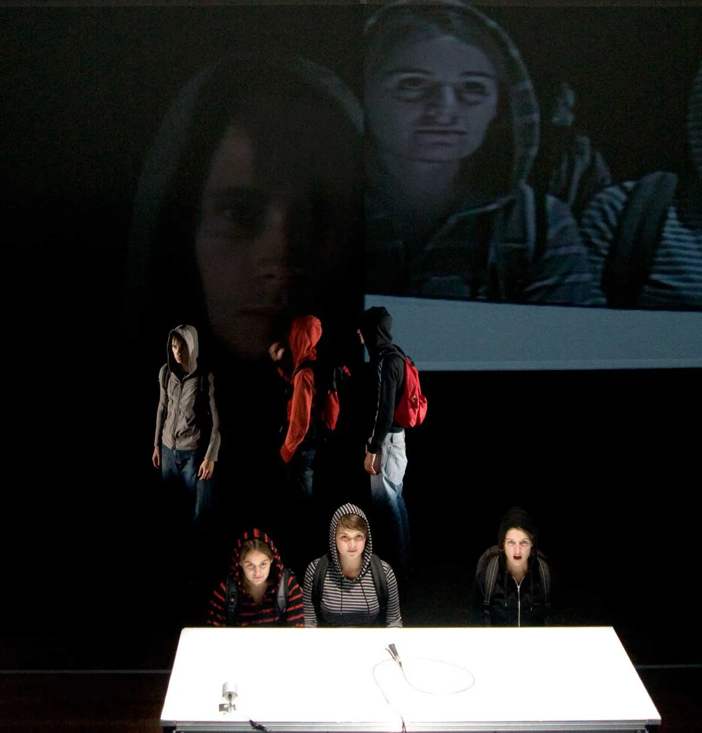 The stage thus became a porous, unstable zone, where voices, bodies, and images negotiated their place — between fiction and reality, figure and withdrawal, political address and scenic experimentation.